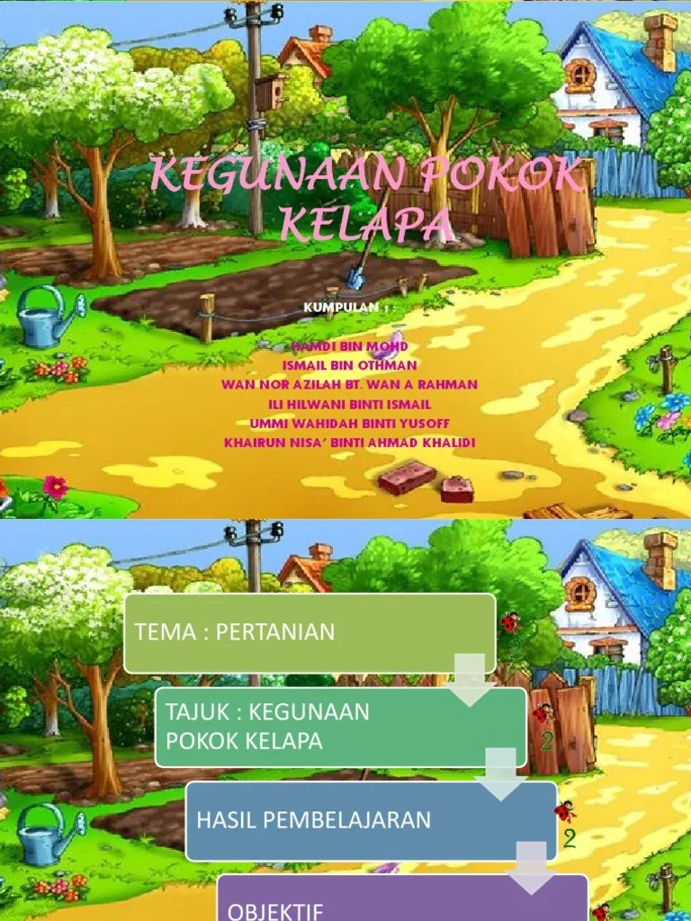 Gambar di bawah menunjukkan kegunaan pokok kelapa sawit. Klasifikasi dan morfologi tanaman kelapa sawit agroindustri. Pokok kelapa dikenali sebagai pokok seribu guna kerana setiap bahagian daripada pokok kelapa ada kegunaannya. Pembetulan ejaan perabut sepatutnya perabot.set induksisesuai tahap 1 dan tahap 2.